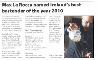 Max La Rocca was judged as the most creative and entertaining bartender in Ireland and been crowned with the prestigious title of ” Ireland’s WORLD CLASS Bartender of the Year”