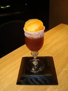 As I was exiting the lobby, I saw the edge of a bar. Tucked away to the right of the concierge desk, is a bar ran by one Max La Rocca. Black, glass, simple quadrilateral wood, highlight this sophisticated bar. Read the menu and you know you’re in good hands. Quotes from the Savory Cocktail books, award winning drink concoctions (citations included), both simple and inventive ingredient combinations.